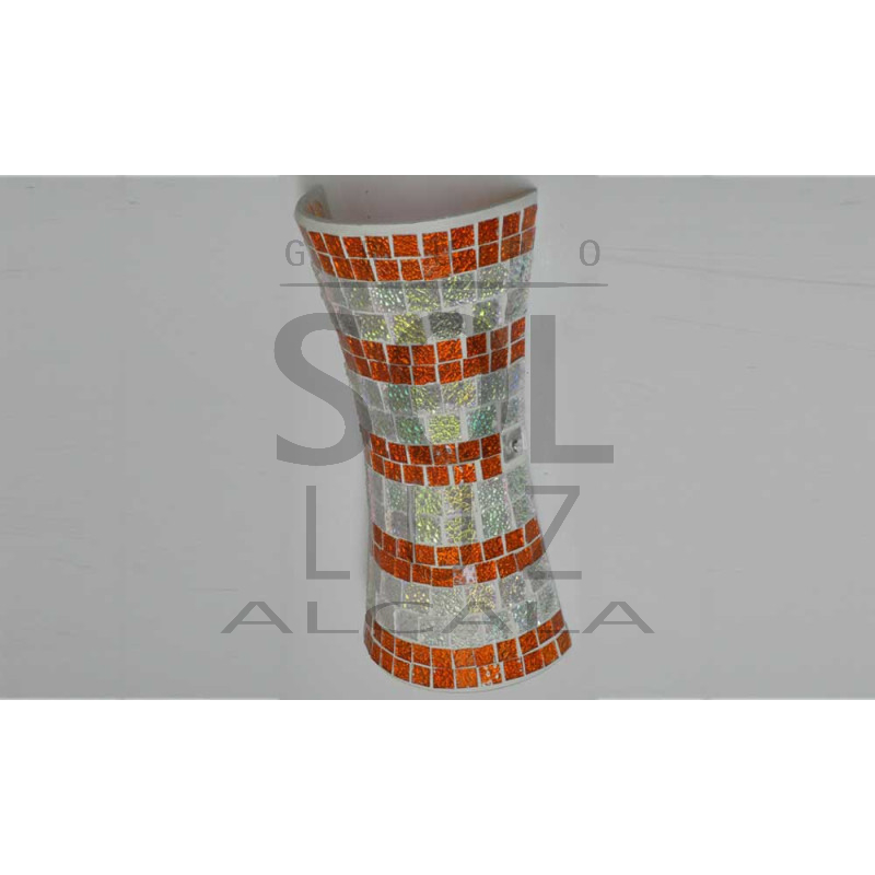 Colorido aplique de cristal en tonos naranjas. Al ser todo en cristal con distintos tonos da una luz muy acogedora. Portalámparas E14.