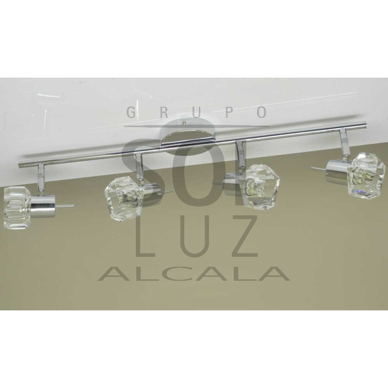 Fantástica regleta de focos cromada con cuatro luces orientables y con tulipas de cristal.