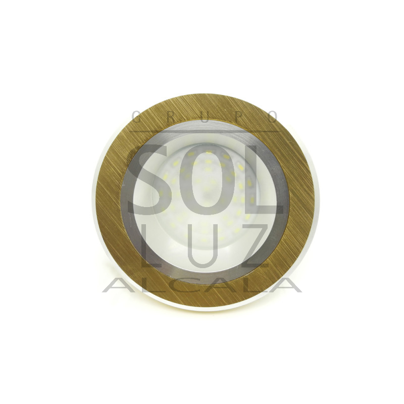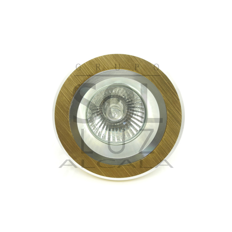 Empotrable redondo en aluminio cepillado color champan, con bisel sobredimensionado que permite un montaje rápido y fácil al mismo tiempo que consigue tapar los posibles desperfectos que se producen al hacer el taladro en el techo.