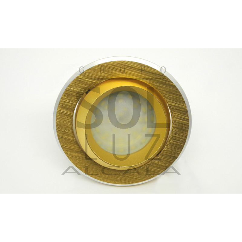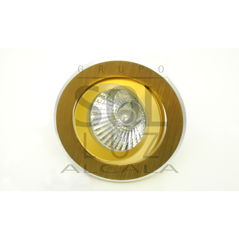 Empotrable redondo en aluminio cepillado color champan, con bisel sobredimensionado que permite un montaje rápido y fácil al mismo tiempo que consigue tapar los posibles desperfectos que se producen al hacer el taladro en el techo.