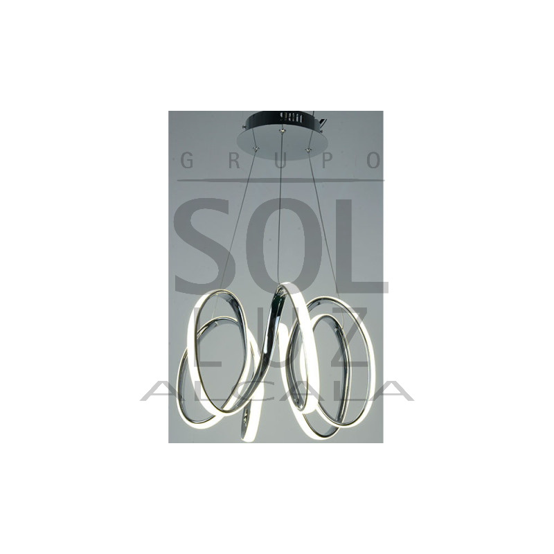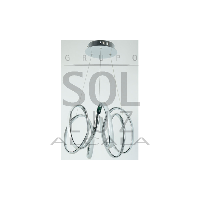 Lámpara de techo de la colección curva con unas líneas elegantes y decorativas muy modernas con lo último en tecnología LED integrado. Con el armazón en color cromo y el difusor en blanco. Ideal para cualquier estancia de la casa.