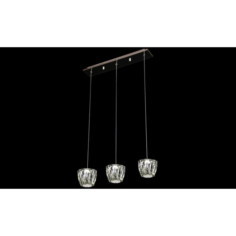 Fantástica lámpara de techo en una línea que consigue mezclar el estilo clásico y moderno. Todo en cristal y cromo.