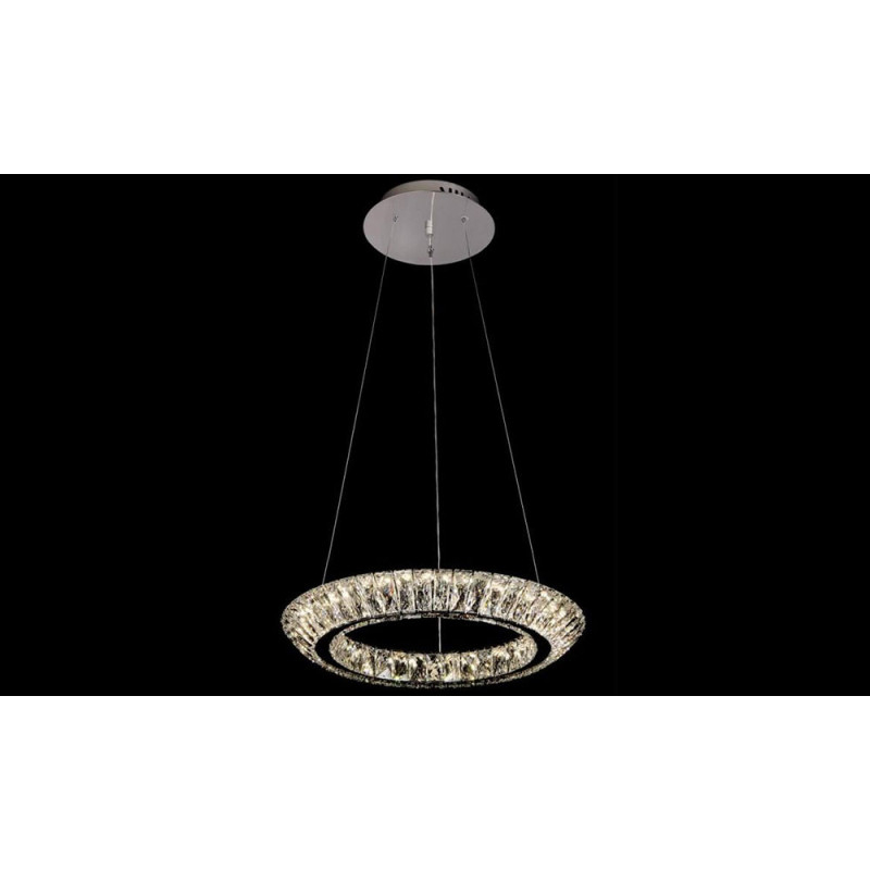 Fantástica lámpara de techo en una línea que consigue mezclar el estilo clásico y moderno. Todo en cristal y cromo.
