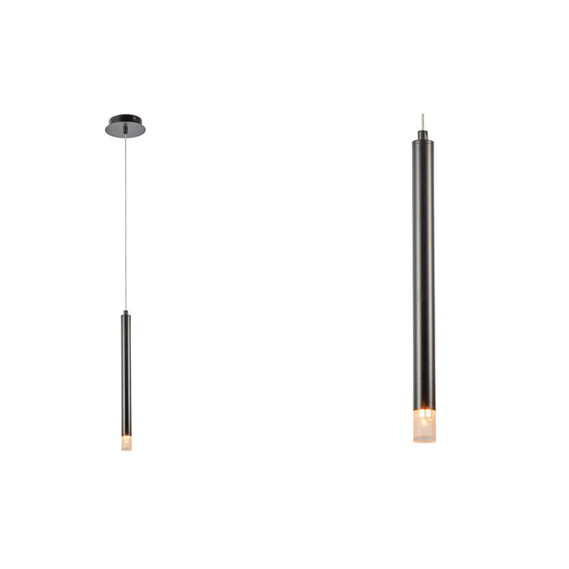 Colgante serie TUBO en estilo moderno y líneas rectas con una luz en color negro. Ideal para iluminar una isla de cocina, mesa de comedor, luz de noche para la mesilla... Portalámparas G9.
