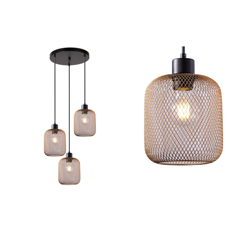 Colgante serie REJILLA en estilo Vintage/industrial. Es una lámpara decorativa y que se adapta muy bien a cualquier estancia. Las tulipas se pueden adaptar en altura. Portalámparas E27.