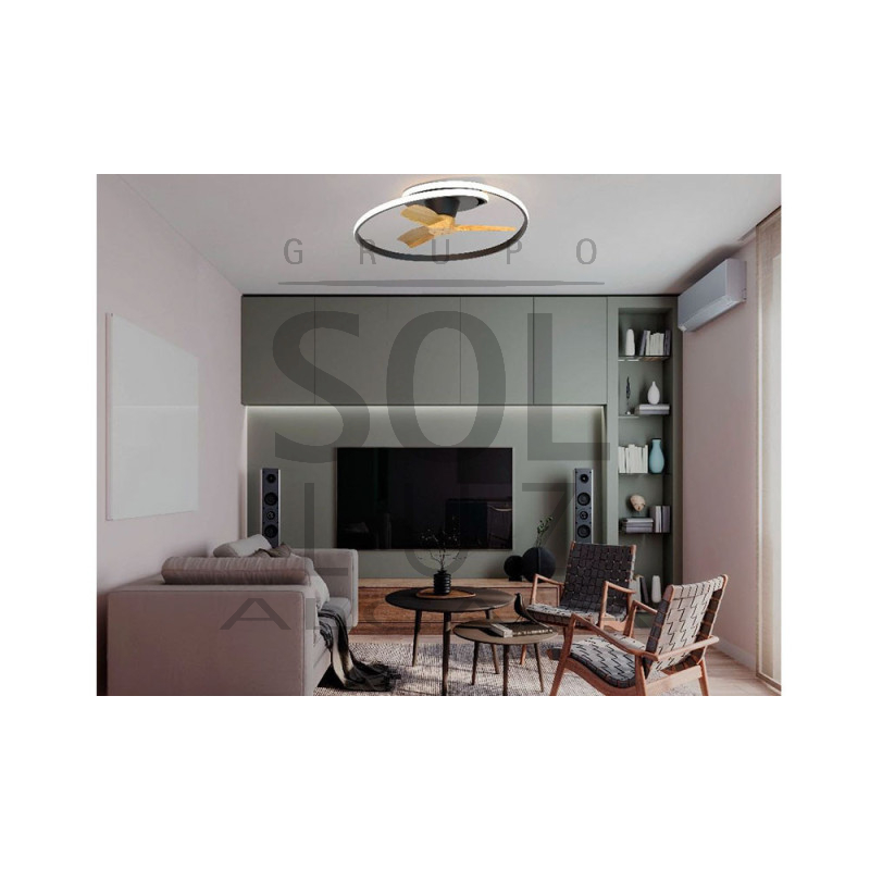 Ventilador modelo OCEAN color negro/madera. motor-DC de ultima generación.