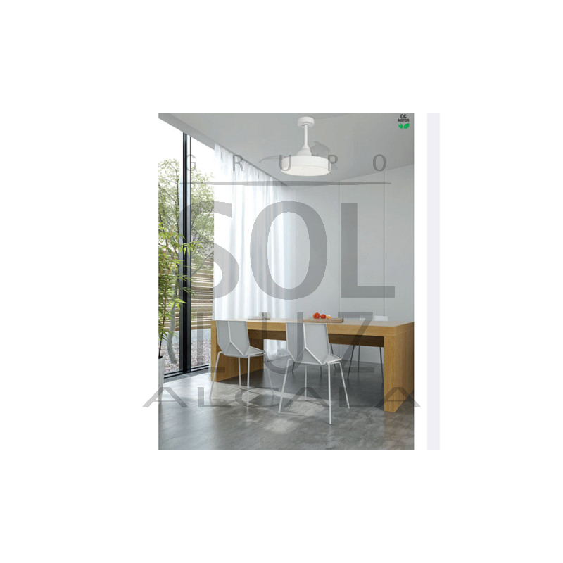 Ventilador modelo ALASKA MINI en color blanco. motor-DC de última generación. Funcionamiento totalmente silencioso, consume solo 25w a máxima potencia.