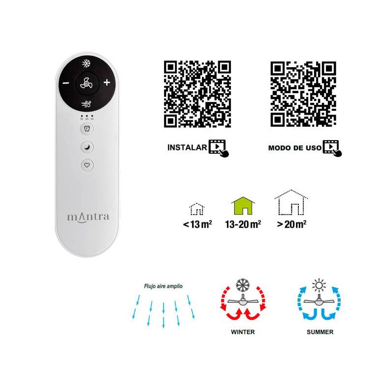 Ventilador modelo IPANEMA II en color blanco. motor-DC de última generación. Funcionamiento totalmente silencioso, consume solo 32w a máxima potencia.