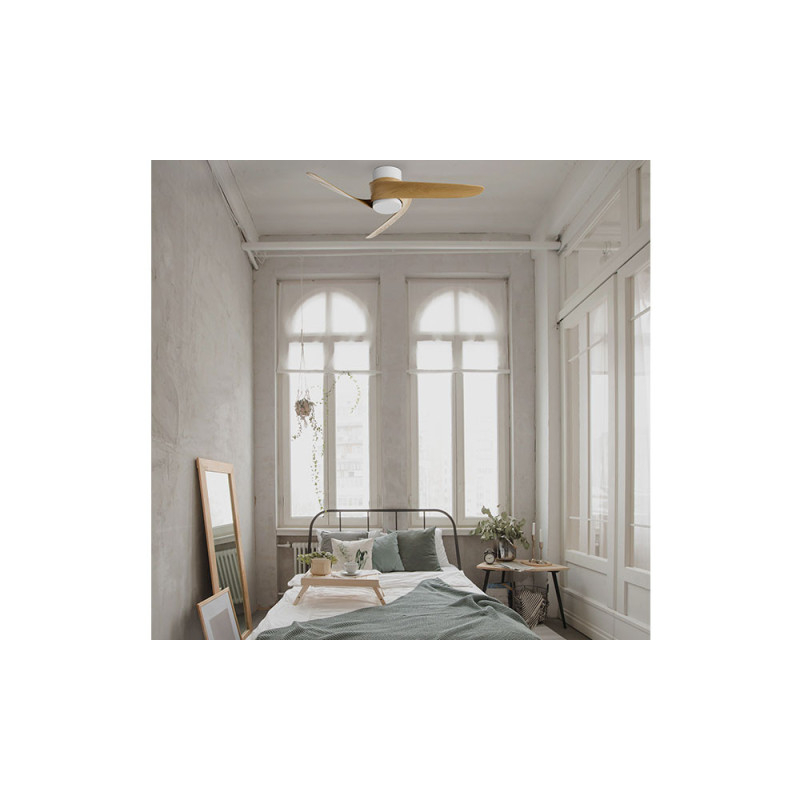 Ventilador modelo GROENLAND XS color blanco/madera. motor-DC de ultima generación.