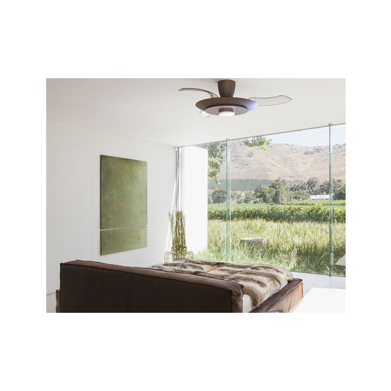 Ventilador modelo KYOTO color café/níquel cepillado. motor-DC de ultima generación.