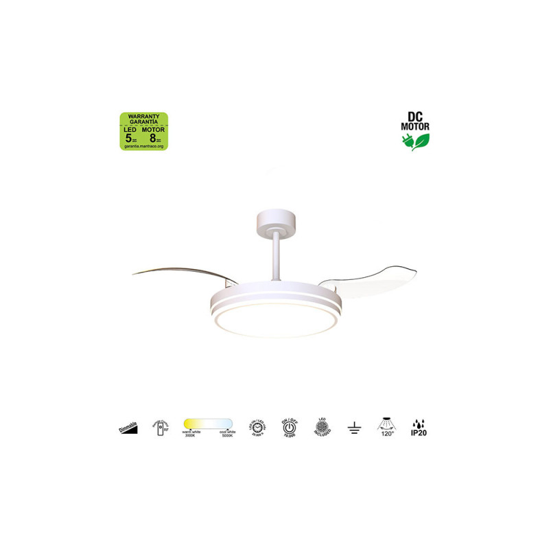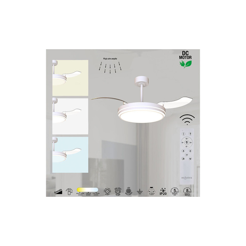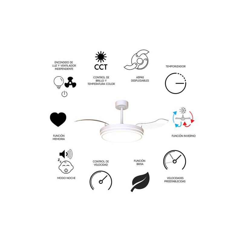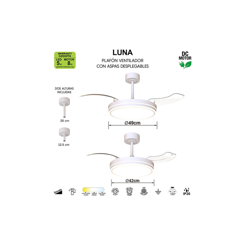 Ventilador modelo LUNA M en color blanco. motor-DC de última generación. Funcionamiento totalmente silencioso.